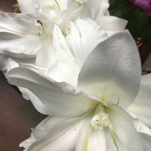 先週のお花② 八重百合です。 正式なお名前は忘れてしまいました💦結婚式の時に使用したお花に似ていましたので購入しました🌼