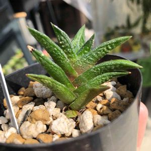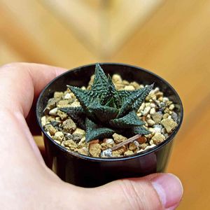 ハオルチア ニグラ このちっこいゴジラ、成長してるのか分からんっ けど、五本の指に入るくらいのお気に入りなんです😃