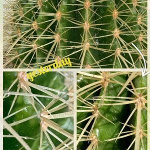 わかりにくいですからね🐒 見にくいですからね🙈💦 半分あれですね、記録用みたいな感じで🌵🙇♂️ 上のと左下のは、ガンガン陽に当てて当てて🌵☀️いつの間にか(おそらく)焼けで、模様のように水脹れかシワシワなような感じにぐる〜っと一周へんてこになり、おや⁉️ピンチか⁉️😀💦と思った金鯱おやびん。🌵💦 右下が一晩休んでぐるーっと一周綺麗なお肌を取り戻した金鯱おやびん。🌵✨ (※調べてみると、金鯱を良く育てるには強い光がたくさんが🙆♂️でも、焼けやすいので軒下や半日影…はい、よくあるやつだ🐒💦 ・例外として実生からなどでずっと強い陽射しの下、上手く強く育った🌵は焼けたりもしないこともあるようです。) 結論。 金鯱はいき過ぎない程度にガンガン焼いて、回復が間に合うように休ませたるべし。🌵✨🕺🏻🆗✨