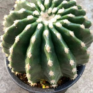 適当な育て方をしていたため10年経ってもあまり成長していない&下側が傷んでいる金鯱。 直径20センチほど。 買ったときの大きさは覚えていないけど980円くらいだったはずだから案外小さかったのかな? ここ二年は、しっかり日に当てて育てたので成長点付近のトゲは長くイキイキとしてきた。 いつか大玉の金鯱となる日を夢見て…。