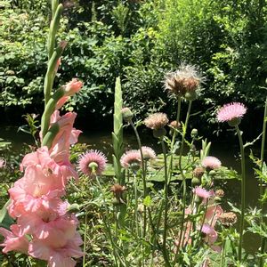 友人と出かけた花の庭園 グラジオラスが咲いてました 今年は、植えたグラジオラスの球根が プランターの中で雨☔に負けてしまい、 育ちませんでした🥲 グラジオラスの横で咲いてるのは ピンク色のアザミ? お天気に恵まれて楽しかったです