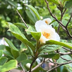 高知県北川村『モネの庭』花のエリアに咲いていました🏷今日のお花のナツツバキ 6/25撮 水のエリアに行った時、テレビでもお目にかかる庭園責任者の川上さんが案内しているではありませんか❣️ これは超( ¨̮⋆)ラッキー✌️と、ちょこっとお話なんぞしながら(ง ˙˘˙ )วウキウキルンルン〜♪と歩いていたら 離れたところから夫が手招き (・・)??ナニ あれは、別のツアーの有料コース ガイドさんが困った顔してたよ 😱 あっ、私だけじゃないよ😵 他にもいたから〜
