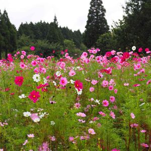 〜くじゅう花公園〜 四季彩の丘はコスモス畑🌸🌸🌸🌿 青空じゃないのが 残念です〜