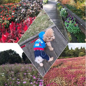 花公園𝒩𝑜.2 お花に囲まれた道をテクテク🚶🏻♀️🚶🏻🐩𓂃 𓈒𓏸 千日紅畑とコスモス畑が広がっていました💖 11月も宜しくお願いします☺️🎀