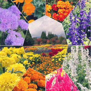 こんにちは〜♬ 〜くじゅう花公園〜 そよ風の丘から〜🍃 赤 ケイトウ❤️ ピンク セロシア💗 オレンジ・黄色 マリーゴールド🧡💛 紫・白・赤 サルビア💜🤍❤️ オレンジ・黄・ピンク ジニア🧡💛💗 白いコスモス🤍 色とりどりのお花が楽しめました💕 白いコスモスやジニアみんな同じ丈なのが不思議〜 高い低いがありそうなものですが 揃っているんですよね💖