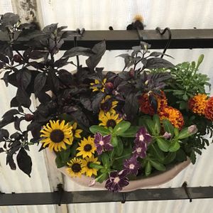 寄せ植えのそれぞれの花たち✿ฺ ♬ ✿ฺ ♬ ✿ฺ ♬ ✿ฺ ♬ ✿ฺ ♬✿ฺ ♬ ✿ฺ ♬ ✿ฺ ♬ ✿ฺ ♬ 観賞用トウガラシ🌶パープルフラッシュ💜の実が綺麗な色なんです🎶🎵