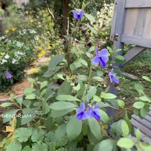 クレロデンドルム ブルーウィング(蒼い翼) 又は、ブルーエルフェン(蒼い妖精) クマツヅラ科の常緑つる低木 青い蝶々のような花は、初夏から秋まで咲きます。 地植えにしたら大株になり、今年は鉢上げせずに、冬越しさせてみることに。枯れませんように。