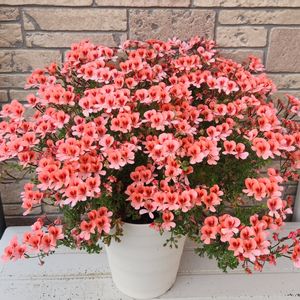 Green Farm Village(奥田園芸)さんの、ペラルゴニウム オレンジ🍊 2年目株?だったかな?💦 いつ切るかな~どうしようかな~と思ってるうちに花芽がついて、せっかくだからと見守っていたらおかしな形に😂 でも満開!✨️✨️ とっても可愛い色です🥰💕