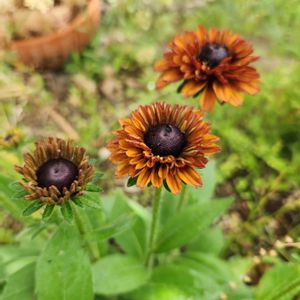 PWのルドベキア アーバンサファリ キャニオンレッド🌺 冬を越えて、春先に虫に食べられまくって危なかったお方😨 丈夫だしと思って油断していたら株元が腐れかけてた💦 慌てて退治して綺麗にしたらなんとか成長して咲いてくれました☺️ やはりあまり赤くない😅