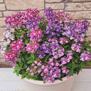 ネメシア💐 こぼれ種でその辺に生えてきたネメシア達を1つの鉢に集めて育てました💐 色とりどりのネメシアの花束になる事を期待していましたが、みんな似たような色😅兄弟みたいなもんだしね🤭 でもたくさん咲いてくれるし綺麗です❤️数で勝負?🤣