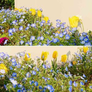 せっかくチューリップ🌷とネモフィラのコラボを狙ったけど チューリップが並んで開花🌷🌷🌷 した場所は何故かネモフィラが少ない😢⤵️⤵️