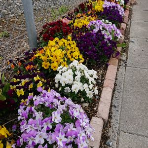 去年、11月19日にpicした会社の花壇のビオラが満開です。4人で80ポット植え付け。 中々見応えがありますよ🤗