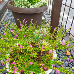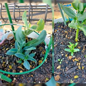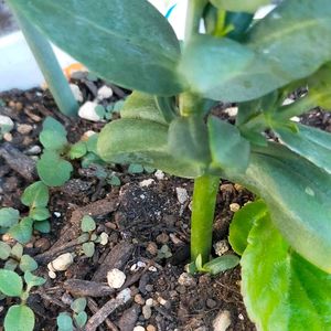 トルコキキョウの根本に ベコニアの芽が出て花のツボミ らしきものも、、、 植え替えしないとね🤔⁉️