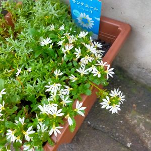 アメリカンブルー ちょっと日陰になる場所に移動 そしたら咲き出してくれました 暑すぎたみたい😱‼️ ブライダルベールも一緒に移動 ツボミがいっぱい付いていますが、咲いたら載せようかな😅