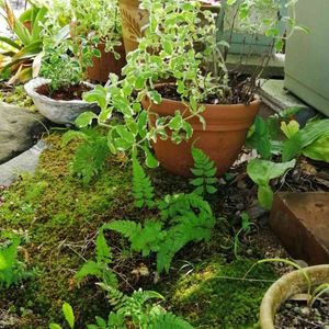 緑のカーテンの影で… 自然の苔とシダ🌿 イキイキしてる🎵✨✨