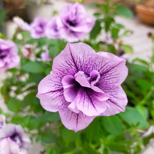 まだベランダで頑張っている 栄養系ペチュニア ビバ シュガーバイオレットベイン💜 やっと涼しくなってきたからか タグのような淡いパープルのお花が咲くようになりました 暑い間は濃いパープルだったから お花の中のスジスジもあんまり目立たなかったなー この夏ホントに暑くて ベランダの草花 ほとんどお手入れ出来ず 枯れないようにとにかくお水だけドバドバあげてて やっとじっくり見ることが出来たとき 全葉の根元にカイガラムシみたいなのがいっぱいあって そろそろ潮時かなって 2年3年と頑張ってた子たちをだいぶ整理してしまいました🥲