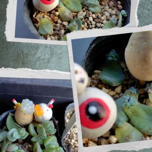 つぶつぶ中心の寄せ植えが意外と元気✨ 夏が終わらないうちに🍉スイカ家のオカータン&オトータン、タネタン御披露目しようと思ったらタネタンが寄せ植えの中に混入(○_○)!!あわててピンセットで救出🤣 ②③④どの子も綺麗~🤩 ⑤この前から気になっていた中心からのニョキニョキ💦これは花芽なの?茎がめっちゃ太くて何だかねぎ坊主みたい😅