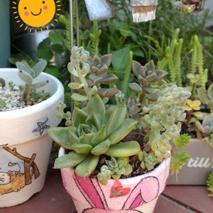 お早うございます(*^^*)🎵 🐰可愛いペーパーが有ったからリメ鉢作りました(^^)✌ 前に鶴仙園で買って来たミニマサンに入って貰いました🎵 このミニマサン、子沢山ママで小さいのが6個も付いてたので✂ ベビチャンは別の寄せ植に~💚🎵 今日は冷たい風が強く吹くらしいです🍃🌀😱 気を付けましょう(^^)✋