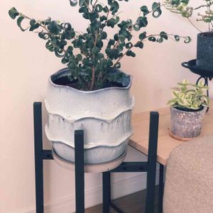 春になったら植え替えしようとマットな白かグレーの鉢を探していたら、全く別の雰囲気の鉢に出会いました。 春までどこに保管しておくべきか。