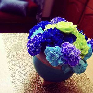 頂いたカーネーション🌼青色の花言葉は『 永遠の幸福 』だそうです。穏やかな毎日でありますょうに…。