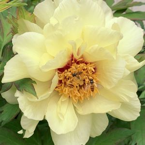 暖かくなってきたので、ミツバチ🐝が沢山飛んでいました。黄色いボタンのオシベのところに2匹!