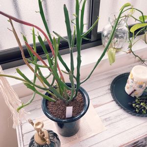 ユーフォルビア ステノクラーダ(珊瑚錦) オサレな雑貨屋さんの一角に多肉コーナーがあり珍しいものがたくさんありました。 特に目を引いたのがピンクに染まったユーフォルビア💕 可愛いかったなぁ😍