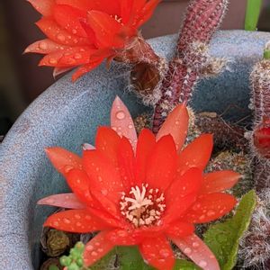 おはようございます 雨ですね〜 2週間前に連れて来た パパ・メイアン 雨の中初めての開花です。 キレイ♪~(´ε` )💕