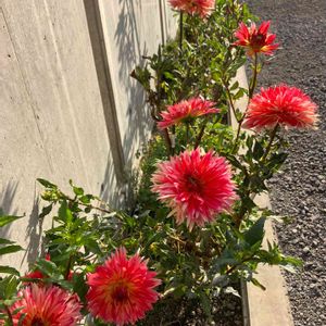 ダリア 後ろのお花のように立派に開くまで、どれくらいの時間がかかるのかな⏰? 雨上がり!太陽の日差しを浴びて、2、3日かかるかな〜?(^^)