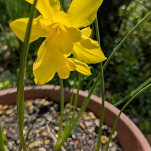 超🙄ミニ水仙。足元にて踏まれていたから、鉢に移動していました。茎が細いから花が咲いての再確認😅😆