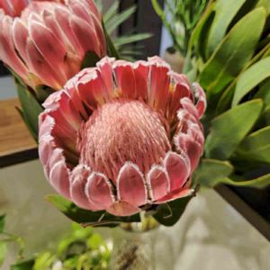 前から欲しかった❤プロテア💓💓いつも行く、お花屋さんで🤗 アレンジ教室の先生も、2本欲しいと言う事で4本🥰 昨日は、染めカスミ😂今日は、プロテア😂幸せ〜(*´˘`*)♥