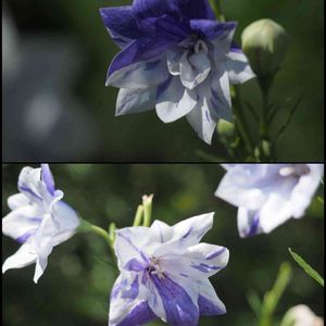 二重咲き絞り模様のキキョウ色々💜 個性豊かで素敵です💙 神代植物公園のはぎ園で📷