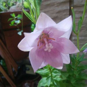 山野草「 二重咲 キキョウ」 あずき色との事で迎えましたが咲いたらピンク色に見えます👀 開花から3日目ですがまだ可愛く咲いています 🌼