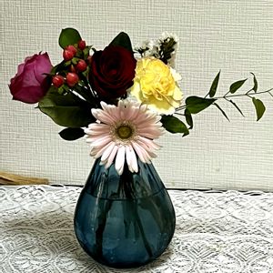 おはようございます😃 今日は、くもり時々晴れ 気温は、25度から31度の予報です。 曇りがちで、風🌪️も有るようです。 3日遅れの誕生日のプレゼント ガラスの花瓶と小ぶりのブーケ💐が送って来ました♪ 東京に居る息子からの花です🌸🌼 誕生日に、電話をくれて お花を送ったからね。 何時も、その日に思い出すのか? 遅れて来ます😅 小さなかわいいブーケ💐を玄関に飾りました。 LEDのライトで💡暗くなってます。 ふた通りのアレンジをしてます。 母親の喜ぶ物が、分かってる👍🤭❣️ 花壇のミニダリア 小さな花🌸が、頑張って咲いてます。 銅葉がきれいだけど、バッタさんに🦗食べられます🥲 家庭菜園のバナナピーマン 初めて植えてみました。 普通のピーマン🫑より苦味が無く、美味しい😋 まだまだ、これから実をつけてくれると思ってます👍 毎日暑い🥵と言ってたら、台風🌀発生や大雨で 暑さも、吹っ飛びそうです😱 被害が出ない事を願います。 今日も健やかで いい日になります様に🤗