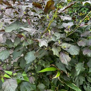 こんばんは🌆 さつまいも🍠を、植えている所に 赤紫蘇が、一本どこから来たのか 種から、成長してます😊 きれいなので、ほっていたら 立派に、成長しました😃 生で、食べれるか、分からないので、お花さんかな🙄