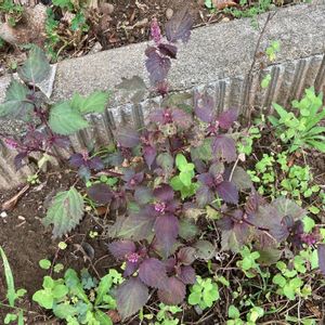 アカシソ 赤紫蘇 植えたわけではないのですが どこからともなくやってきて 庭に彩り。 しそジュースにしてみようかな。