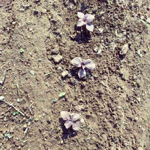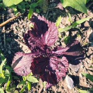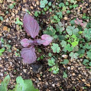 溢れ種からの赤紫蘇😊 紫蘇ジュース作ろうかな! 春先、冬にビーツを育てていた鉢からぽこぽこ芽が出ました🌱 一部はポットやプランターに植え替えましたが残りはそのまま放置。(これと同じのがもうひとつ) 本命の子たちはそのまま育成、ビーツの鉢の子たちを刈り上げました。