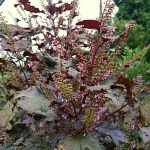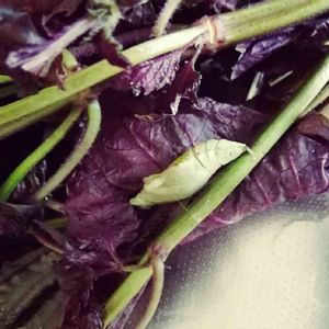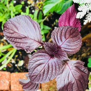 紫蘇! 溢れ種で残ってたのかな? 私にとってはカラーリーフとして残しているの(^-^)梅干漬ける程大量には有りません。葉裏も綺麗な色💕梅干以外なら、何で食べる?
