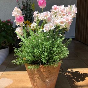 ✨春の寄せ植え✨🌷🌸✨ 金魚草 トゥイニー チューリップと花かんざし と共に
