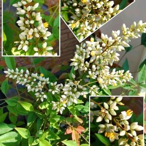 ナンテン(南天)の花が咲きました🌼🎵 義父母が、「難を転ずる縁起木だから」と言って、わざわざ新幹線で実家から子苗を運んで来てくれたものです。剛健なので西側に日よけとして植えました☀ 以来、土が合ったのか、伸びること・増えること。毎年剪定しまくってます。今年はGSに花を投稿しようと思って、あまり切ってないので伸びて茂って蕾が沢山付いてスゴいことになってます(゜o゜;💦今まで切ってばかりで、あまり咲かせなかったから?? 花が終わったら、サッパリ剪定します😅 葉は防腐効果があり、料理の添え物に使われます。実は咳止めの薬とされますが、葉・実ともに微量の毒性分(アルカロイド)を持つので、食用ではありません。🌿 メギ科ナンテン属🌿 花言葉∶良い家族・私の愛は増すばかり・ 福をなす・機知に富む (白い実)∶つのる愛・深すぎる愛
