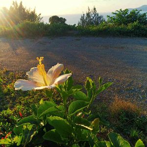 昨年2月にアップしたハイビスカス(白) 移植から8ヶ月 咲きました。😆 嬉しい‼️ yuyuさん主催 金曜日の蕾たち 2nd投稿