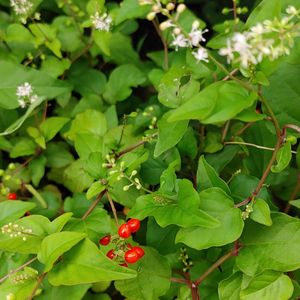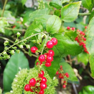 おはようございます🌞 太陽復活で また暑くなりそう😂 珊瑚のような赤い実が 数珠のように連なって付く ヤマゴボウ科 とされるだけあって どこか似てますよね! 淡いピンク色がかった4枚の花弁は ガクで 花びらではありません🤗 花が終わると 3ミリ位の真っ赤な実が沢山ついてキレイです😊 良い週末をお過ごしください🪸