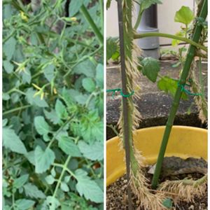 髭ぼうぼう🥸ヒャ〜💦💦💦 長雨の影響で普段見ない状態に😅 少し気温が下がってきたけどこのトマト無事になって下さい✨