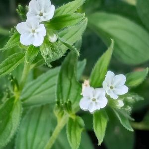 1cm位の大きさです ムラサキ科の仲間は紫がかった色の花が多いのに本家本元はシロバナ~☺ あ、スナビキソウも白だった💦 あーくんくんするの忘れた~💦💦 ムラサキ🆘 ムラサキ科・ムラサキ属 ⭐絶滅危惧 ⅠB類(EN)⭐
