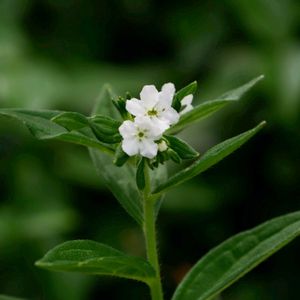 【紫】《ムラサキ科》 花言葉 「尊敬」「高貴」「上品」「愛情」「美」 「神秘」 染料に使われてきた ムラサキの花も、現在は幻の花に 小さな白い花を咲かせます 染料は根っこを乾燥させて 使います。 化学染料が使われ始めてから 今では絶滅危惧種に指定。 万葉集にも詠まれてる植物で 教科書にも登場してます。 奈良時代から江戸時代末期まで 栽培が行われてきましたが 明治時代以降は 化学染料の登場により 染料としての価値を失ってしまって、幻の花になってます。 染料としての紫草は 「風土記」等に記され 各地遺跡でも 繊維染色の痕跡が出土しています。 聖徳太子の制定した 冠位十二階の最上位は 深紫(こきむらさき)で その後の平安藤原氏の色でも ありました。 豊臣秀吉等も この色の服に異常な関心を寄せ 徳川将軍にも引き継がれ 「江戸紫」として 一大文化を形成するに至ります。 あかねさす紫野行き標野行き 野守は見ずや君が袖振る(額田王) 紫草のにほへる妹を憎くあらば 人妻ゆゑに我恋ひめやも(大海人皇子)