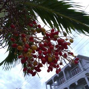 宮古島 マニラヤシの実。赤くて綺麗な実だけど食べられないらしい。