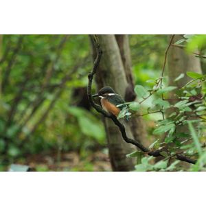 ◆お散歩 天気予報通り昼から雨が止んだので、散歩がてらコーヒー豆を買いに行きました。 途中でいつもの長久保公園に寄ってみると、久しぶりに雨が止んだせいか、カメラを持った人が何人も池の畔でカワセミ待ちをしています。 今日は鳥さんには期待はしていなかったので、鳥用のレンズも付けていませんから、そのまま通り過ぎて暫く行くと... 何んと言う運の強さかカワセミが、それも35mm換算300mmで この距離感ですから思わず笑っちゃいましたよ!!