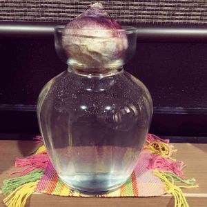 -番外編- ホムセンにて瓶付き(金具も)で値引きされていたヒヤシンスの球根 普通に球根購入していたんだけどね、 今年は瓶付きからスタート。 昨夜セッティングして玄関へ… と思ったら玄関思ったより暖かいじゃないか( º言º) 前のアパートは冬の間野菜の保存庫としても平気なくらいに寒かったからその感覚でいたけど…。 保管場所の気温を忘れていた( -᷄ω-᷅ ) なので今年は玄関外の物置へ…w さて根っこ出ますかね? 頑張って下さいね〜( ・ ω・ )ﻭ✧