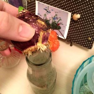 根が出てきた! 1日、2日で出てくるなんて😆 生命力を感じますね〜 頑張れヒヤシンス♪