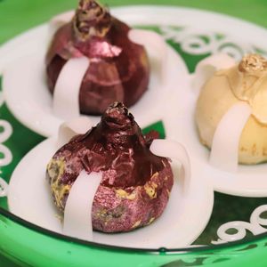 ヒヤシンス:カーネギー(白)/ピーターストイフェサント(紫)/ピンクパール(桃)。 球根だと白以外分からないですが、球根猛者なら見分けがつくのかな? 冷蔵庫投入2日目で発根確認できました。1週間はかかると思っていましたので少し嬉しいです!