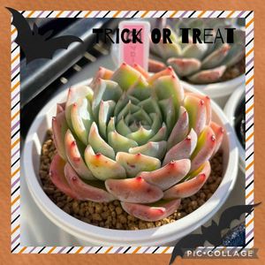 こんばんは〜🌙 遅くなりましたが、 今日はpeanyatsの日🥜🐱💕 先月のプレゼント企画で頂いた ハロウィンのポストカード🎃👻✨✨ とっても可愛い〜です*・゚(≧︎∀︎≦︎)゚・* ありがとうございました💕 そして、今月は牛ちゃん鉢にしてみました🐮✨ No.を見ようと底を見てみたら😃 見つけてみてね!と😃 牛柄の中に🐱と🖤見つけました❣️ あってるかな〜❓ 45さんのスリョンさんも可愛くなってきましたよ〜💗 可愛い〜peanyatsちゃんと綺麗な多肉ちゃん達に癒されてます〜(*˘˘*).。.:* 可愛い新作も続々と😍 なかなかお迎え出来ませんが🤣 またチャレンジしますね〜💕
